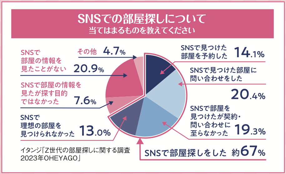 お部屋探しにおいても、インターネットを駆使して情報を収集するそうで、良い情報だけを鵜呑みにせず、マイナス面やデメリットについても口コミをよく見て、情報の精度を高めようとするのがZ世代流と言えそうです。