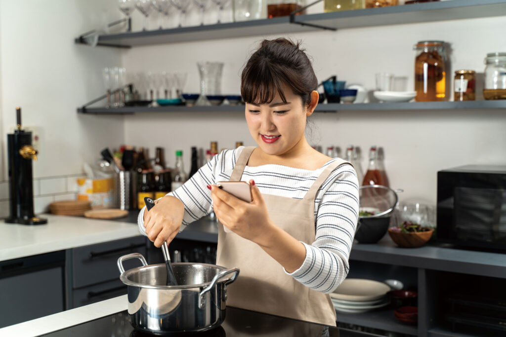 とにかく“時短”がイマドキの暮らしのキーワード。ハンドミキサーや、電気圧力鍋、ジューサーなどを日常的に使っているため、キッチン周りにはコンセントが必須。スマホでレシピ動画を見ながら料理をするという若者も多く、冷蔵庫用のコンセントだけでは足りないんです!